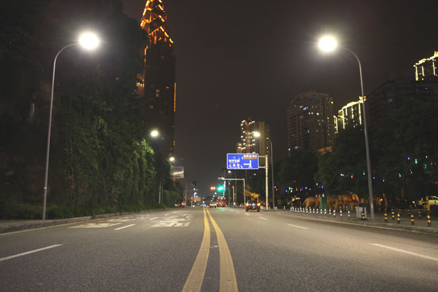 四川省南充市东顺路使用重庆“中国创造”世界领先物联网多色温防雾霾LED人工智能路灯