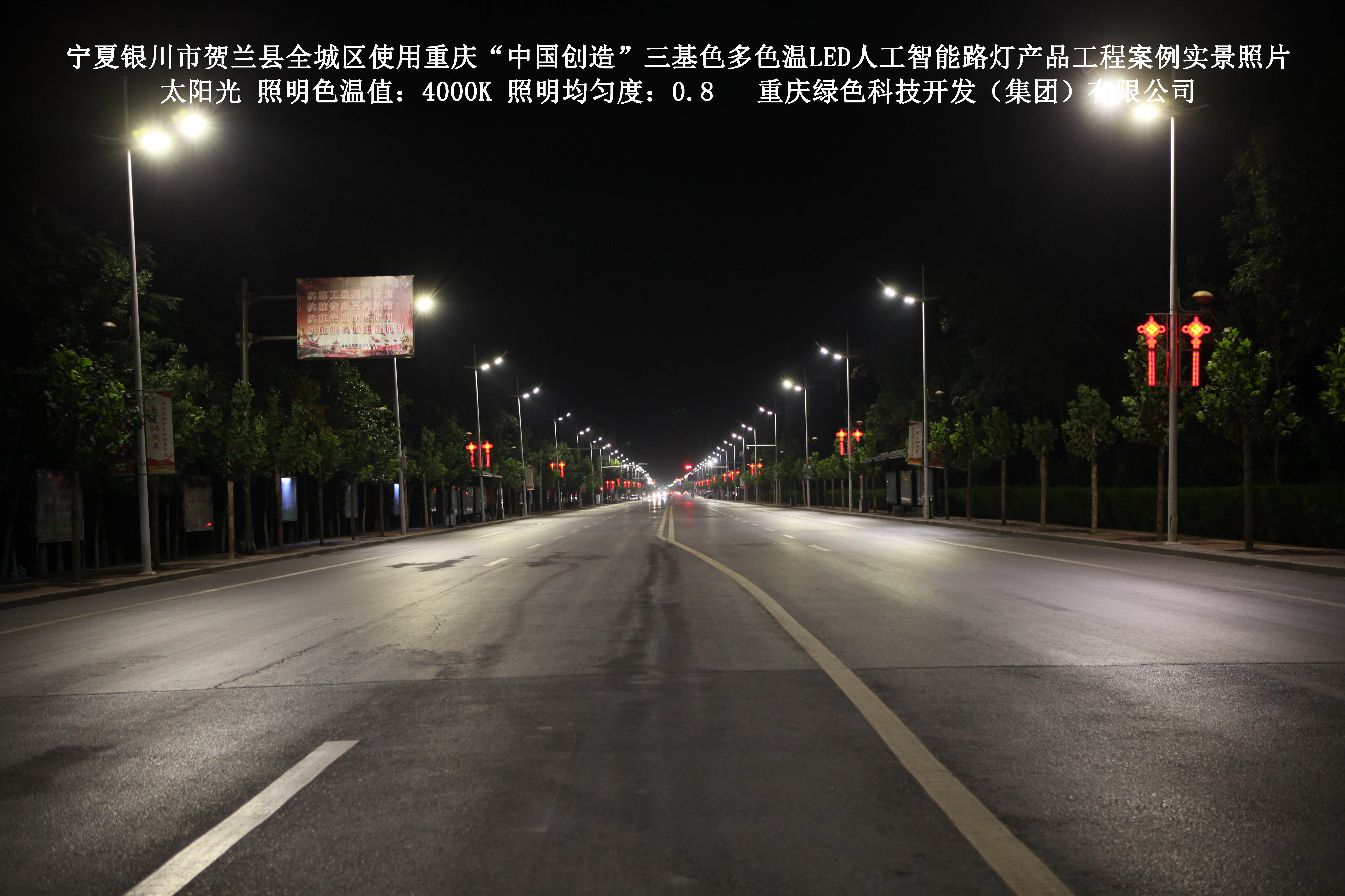 宁夏银川市贺兰县全城区使用我司研造的重庆“中国创造”三基色多色温