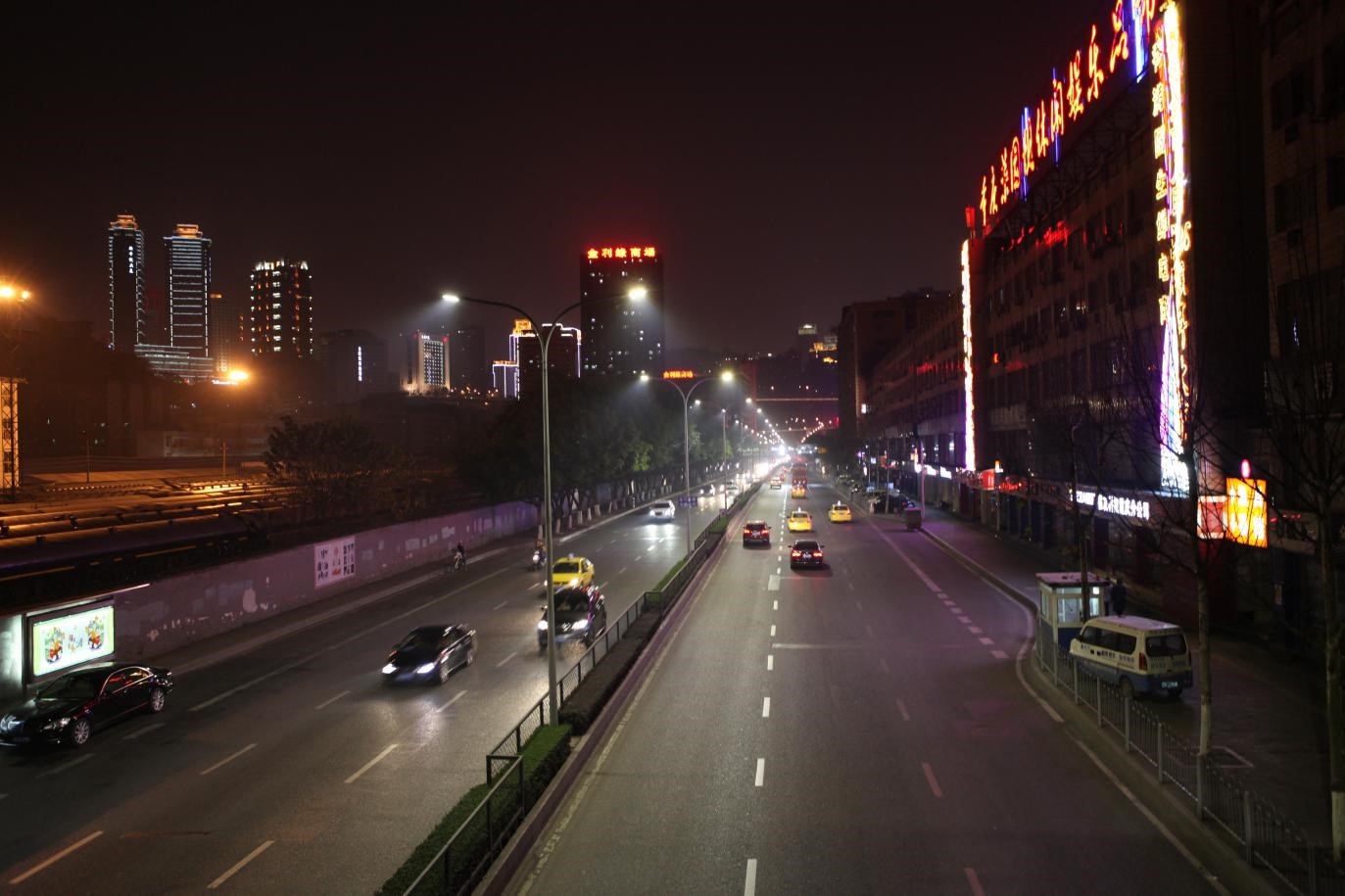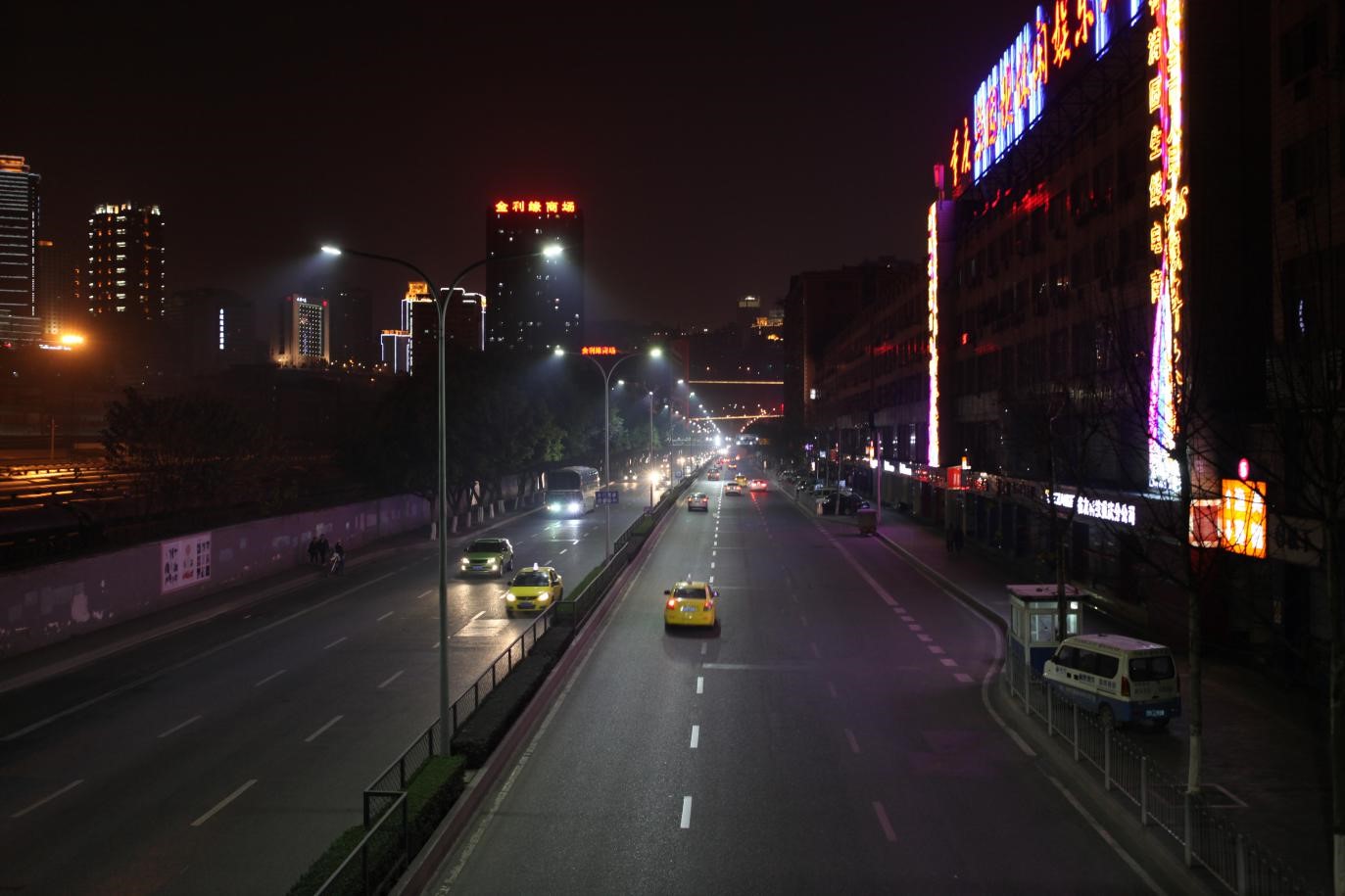 重庆市渝中区菜袁路实施的物联网多色温防雾霾LED人工智能路灯