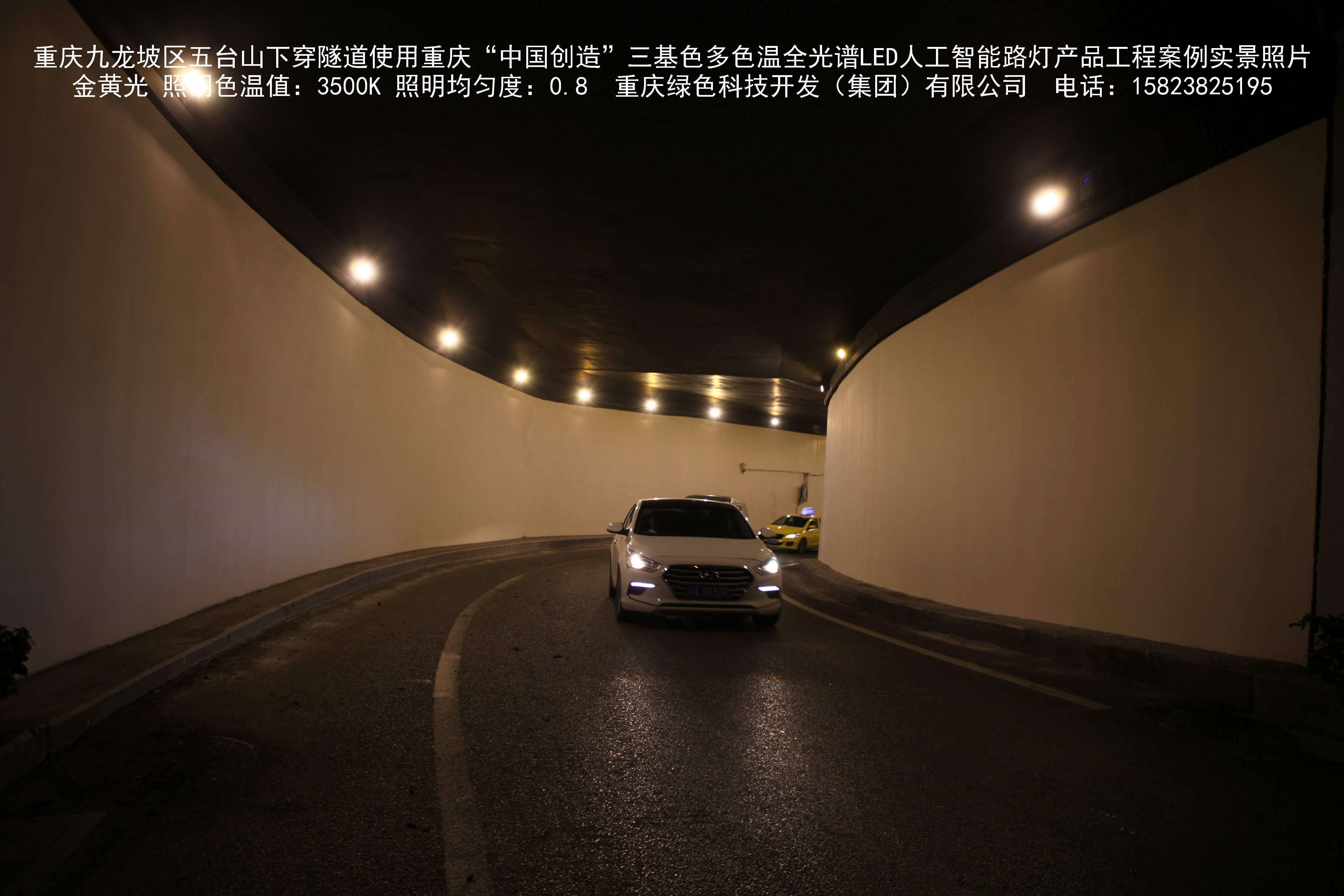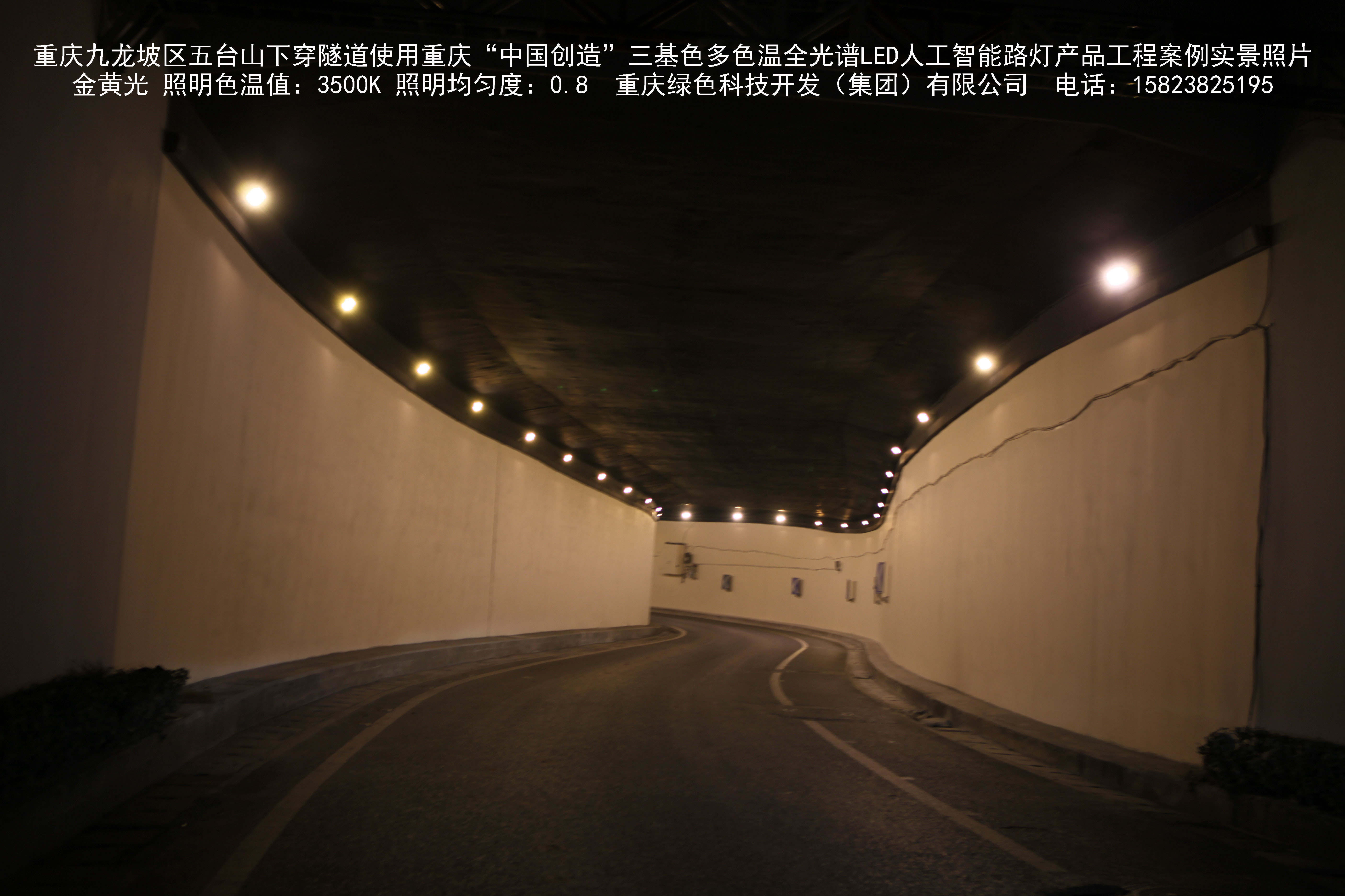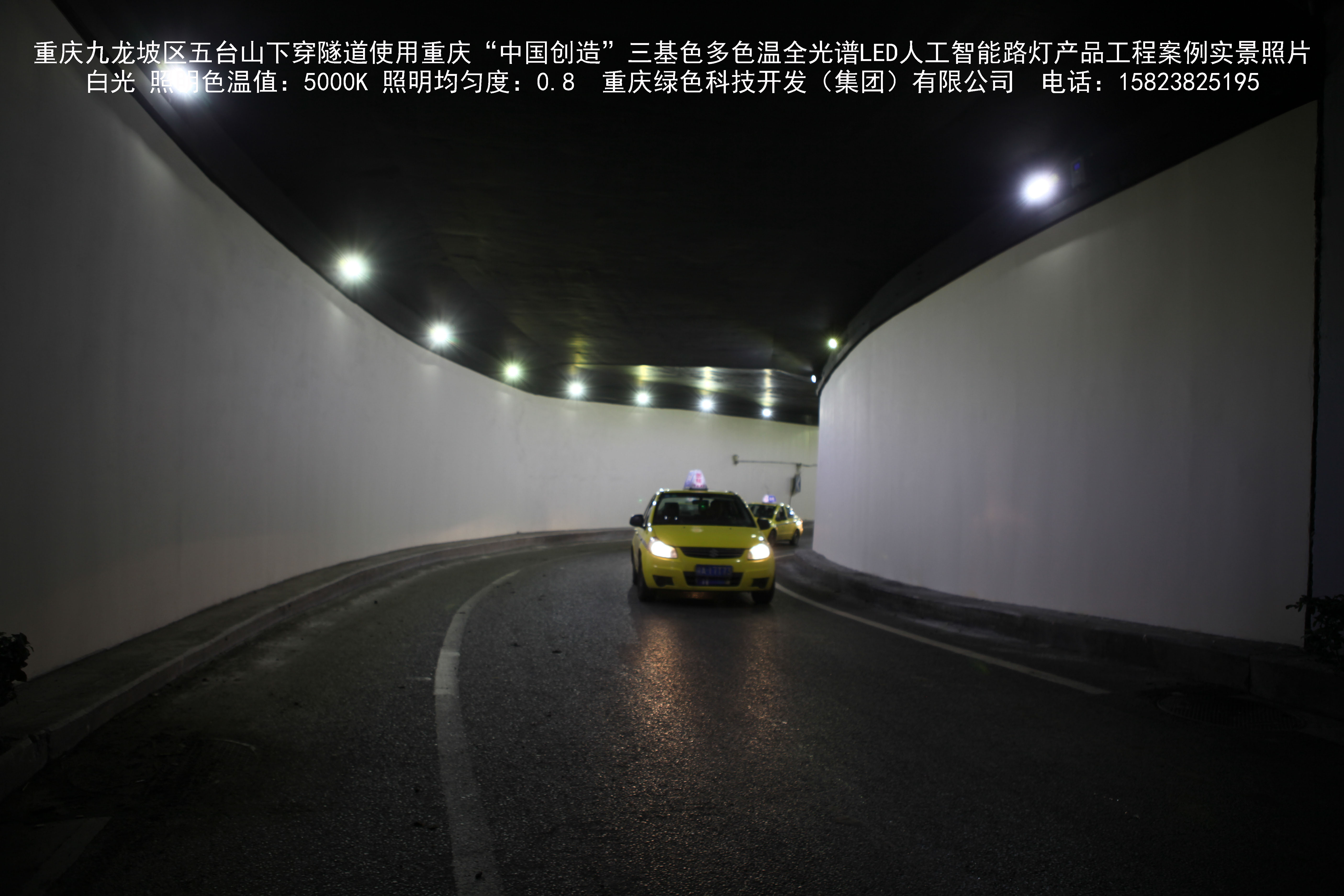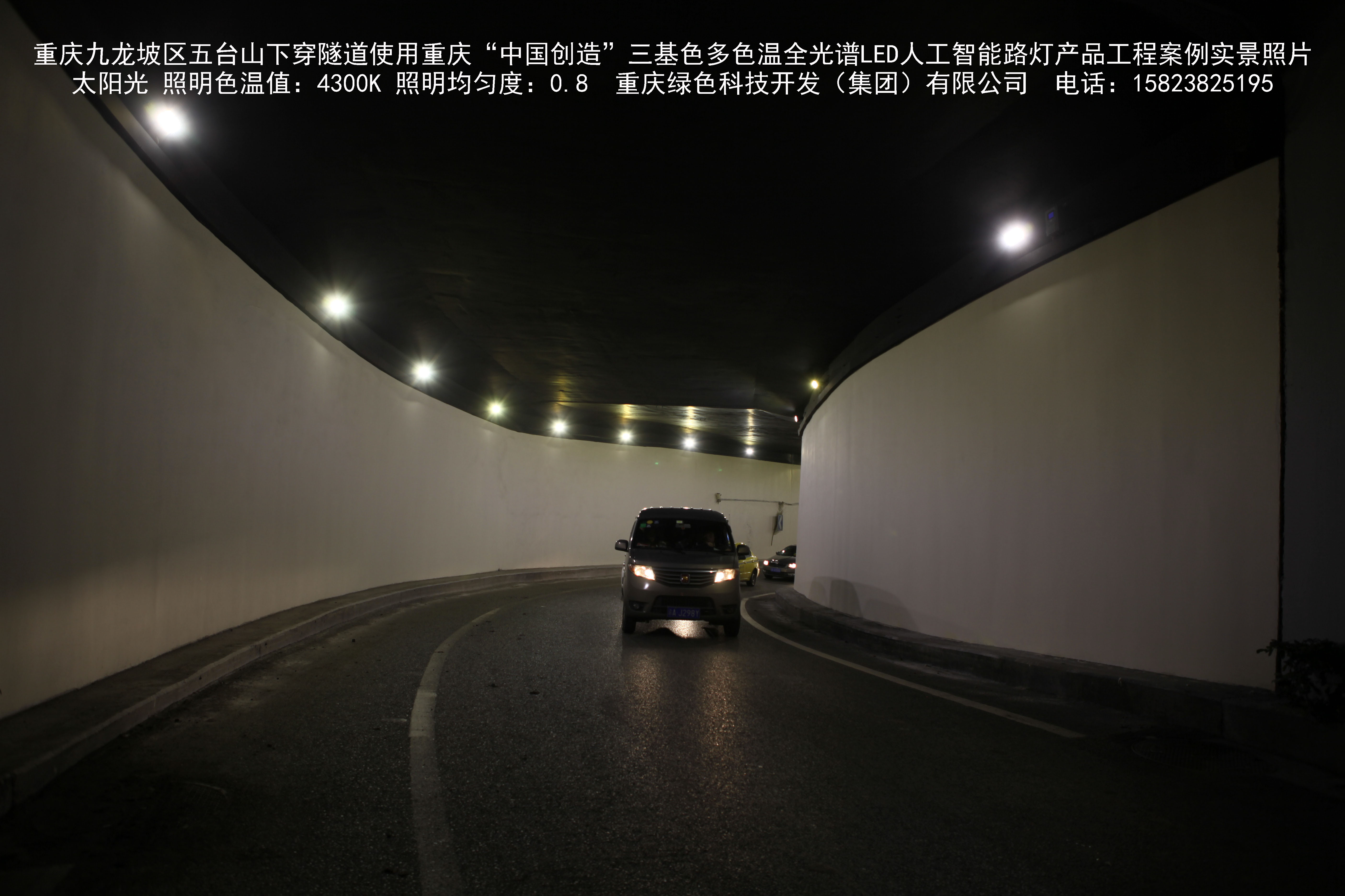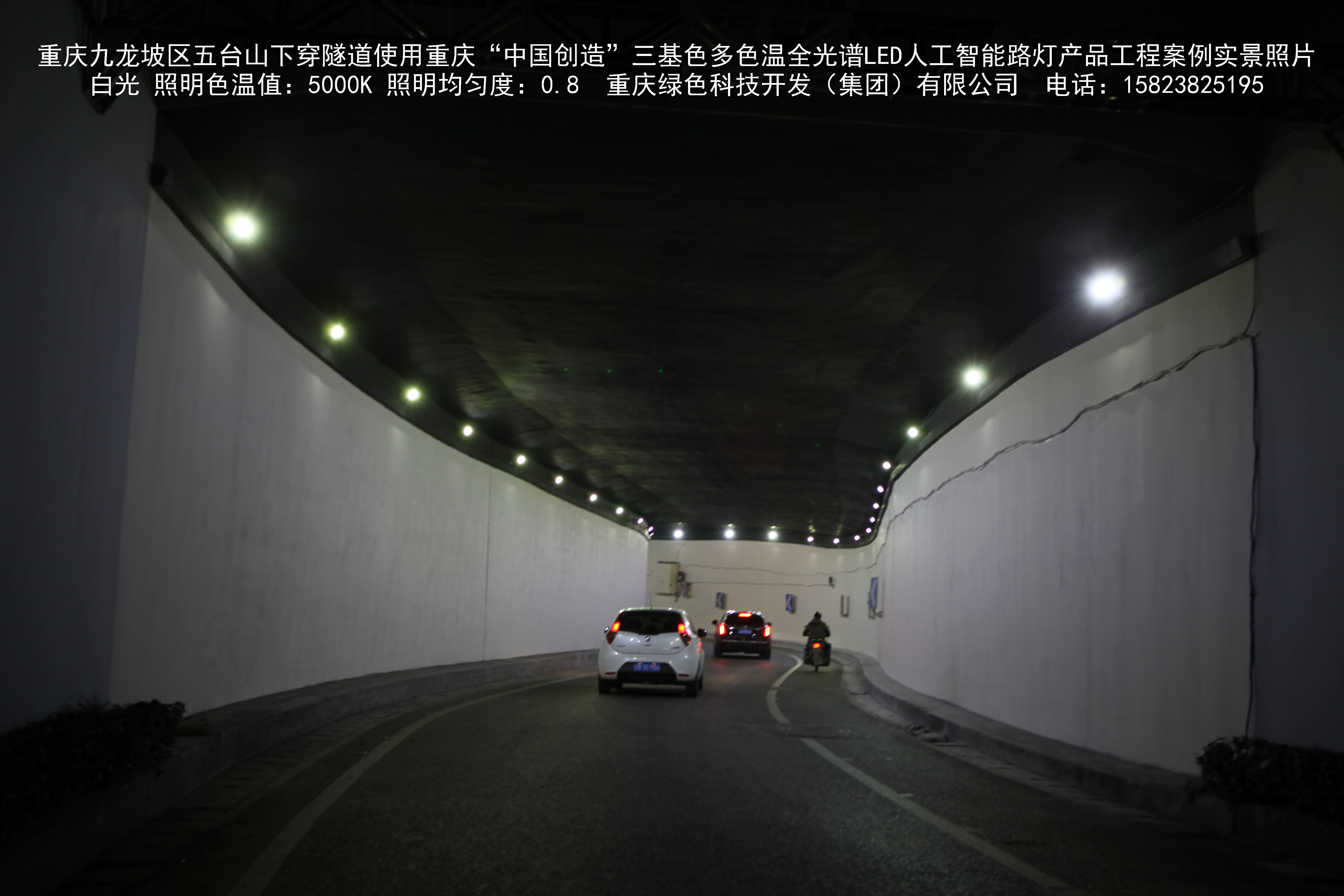 2018年9月,重庆市九龙坡区城市管理局使用我司自主研发制造的重庆“中国创造”三基色多色温全光谱LED人工智能隧道灯系列产品,实施了五台山下穿隧道市政设施品质提升工程。该工程已全面竣工。工程实施后,极大地提高了城市照明清晰度、灯光均匀度、舒适度。通过智能终端实现单灯感知、线缆防盗报警,与原高压钠灯相比,节能率60%以上,有效解决了关闭控制回路或间隔关灯方式造成的照明暗区,确保行人和车辆通行的安全,实现城市路灯照明系统的智能化管理,推进了智慧城市建设。