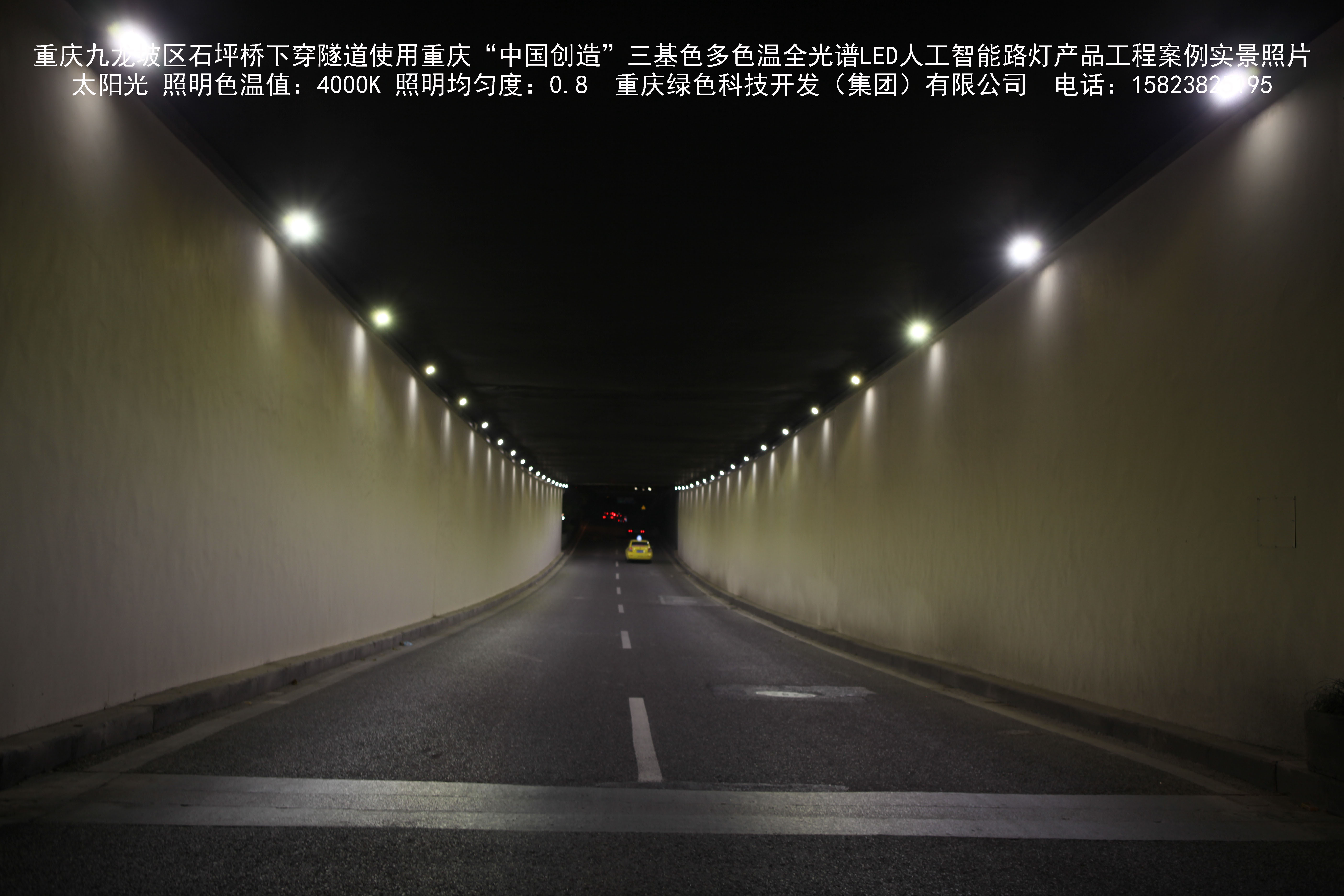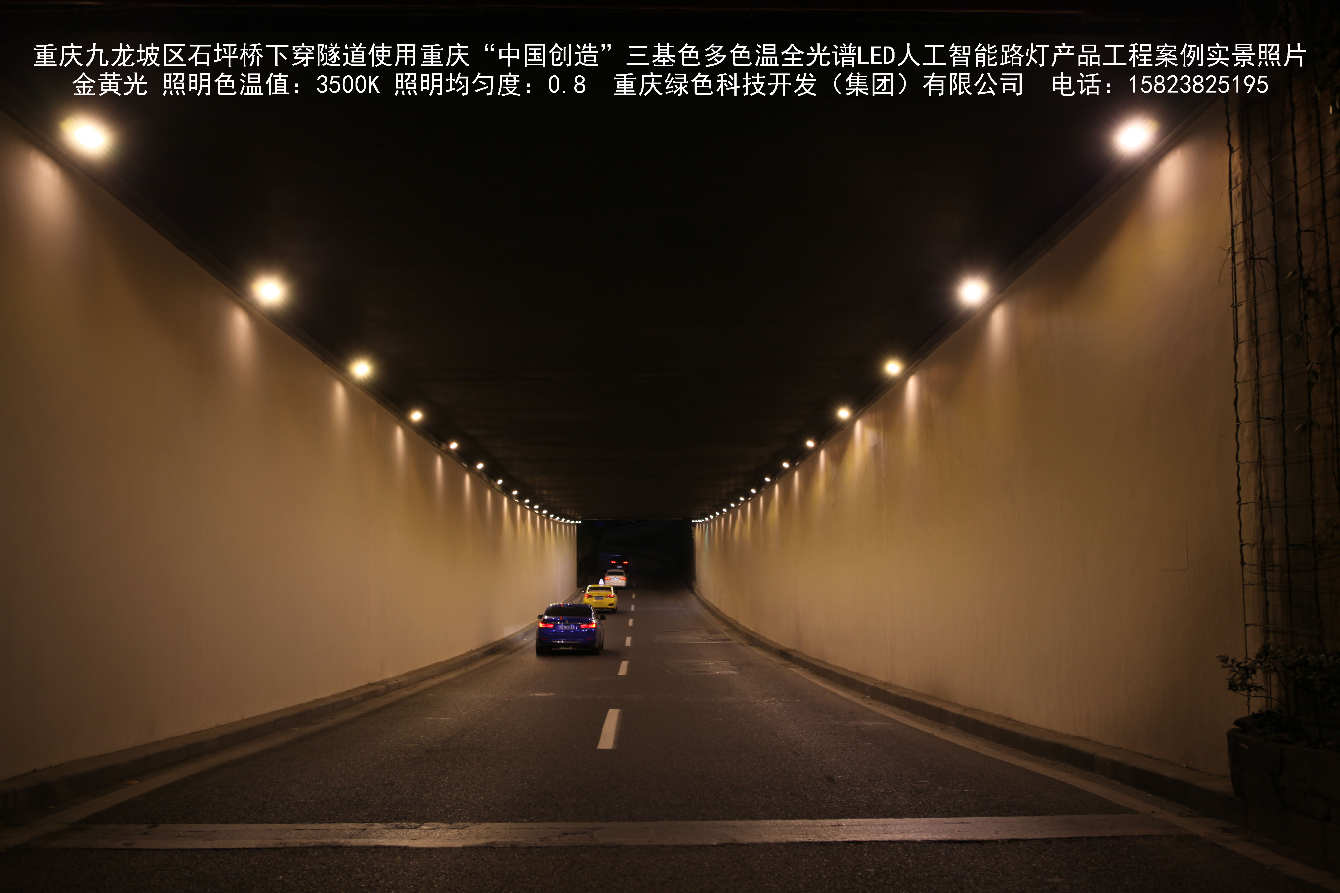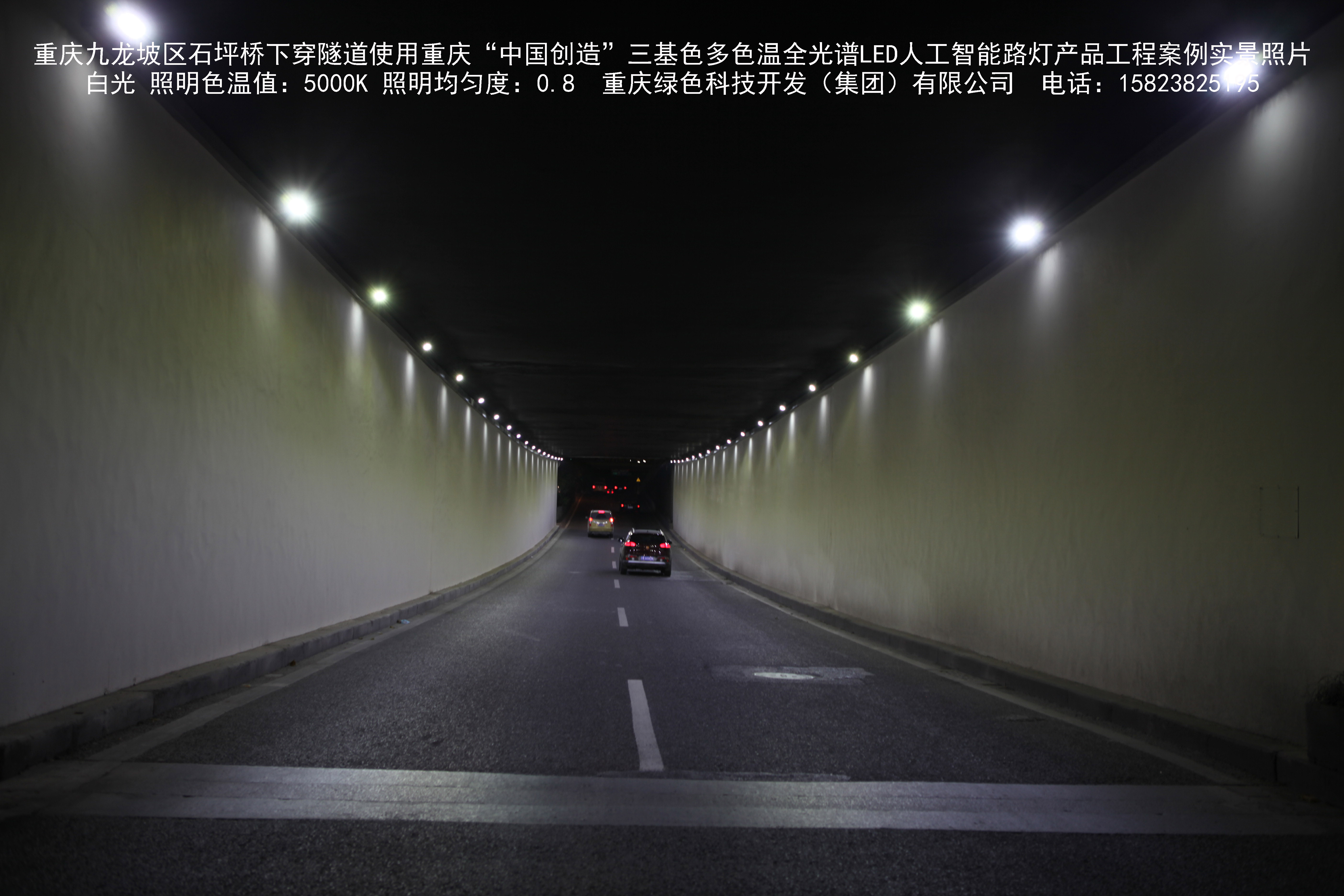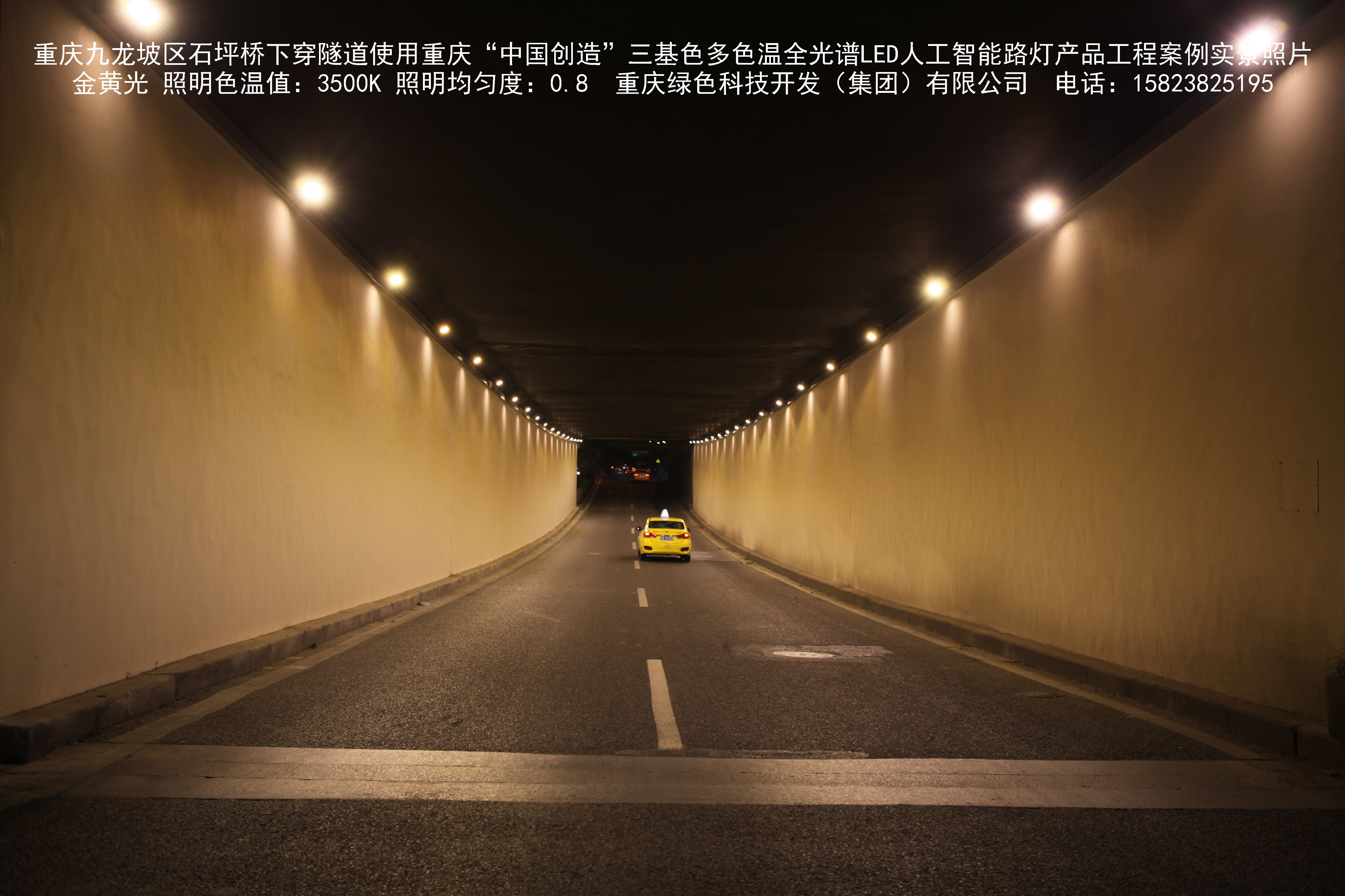 2018年9月,重庆市九龙坡区城市管理局使用我司自主研发制造的重庆“中国创造”三基色多色温全光谱LED人工智能隧道灯系列产品,实施了石坪桥下穿隧道市政设施品质提升工程。该工程已全面竣工。工程实施后,极大地提高了城市照明清晰度、灯光均匀度、舒适度。通过智能终端实现单灯感知、线缆防盗报警,与原高压钠灯相比,节能率60%以上,有效解决了关闭控制回路或间隔关灯方式造成的照明暗区,确保行人和车辆通行的安全,实现城市路灯照明系统的智能化管理,推进了智慧城市建设。