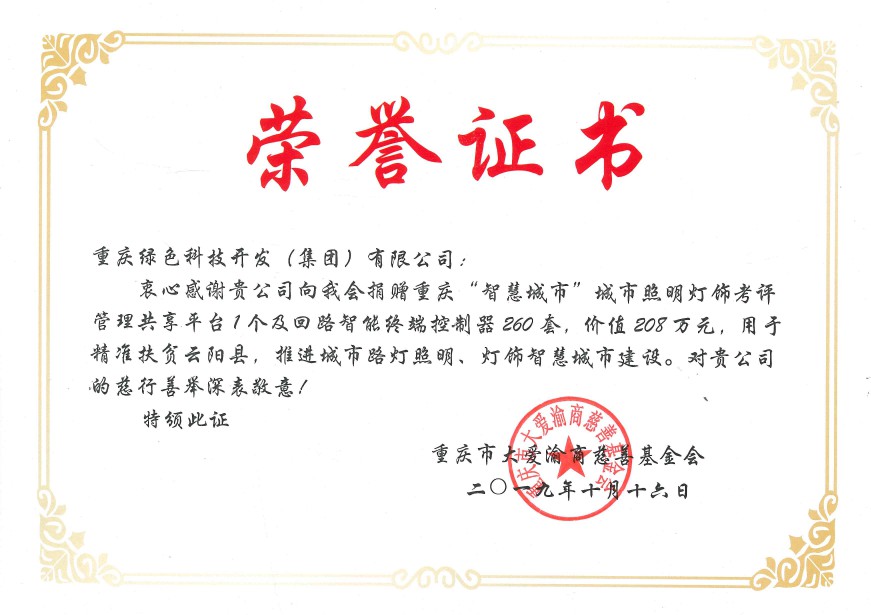 10月16日,优米娱乐平台为支持国家级重点贫困县精准扶贫工作,积极推进智慧城市建设,通过重庆市大爱渝商慈善基金会,向云阳县市政设施管理所捐建了回路智能终端控制器260套,以及配套建设重庆“智慧城市”城市照明灯饰四级考评管理共享平台1个,总价208万元,用于解决云阳县城市路灯照明智能化管理的问题,帮助云阳县实现市政府在《重庆市城市综合管理提升行动方案》提出的城市照明“一把闸刀”管理的要求。