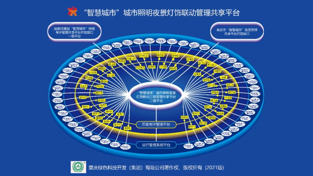我司为客户专门搭建的“智慧城市”城市照明夜景灯饰联动管理共享平台,支持千万级多色温全光谱LED智慧路灯、夜景灯饰智能终端设备接入,实现一个平台中城市照明、夜景灯饰统一智能化管理,通过智能终端感知,对每一盏灯运行状况进行监测,实现国家、省级、市级、区县级照明管理部门对基层照明部门城市亮灯情况的逐级考核。