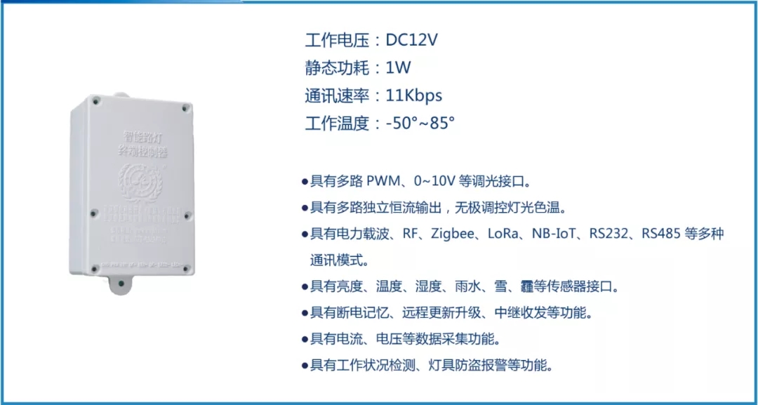 多色温智能路灯照明技术采用移动互联网通信技术,智能采集环境温度、湿度、PM2.5浓度、光照度等数据,通过平台分析处理,由服务器向集中控制器发出命令,对数公里内每个智能终端控制器进行互连互讯,实现多色温调色、调光舒适、安全的城市照明(正常天气下,实现晴天“太阳光”至“阴凉天”白光最舒适色温值照明;在雨、雾、霾、雪、沙尘、冰冻等恶劣气象环境下,实现“晴天”金黄光光环境防雾 霾安全照明。),同时具备单灯感知、故障告警、防盗、设备资产管理等功能,有效降低设备能耗、减少维护成本,提高城市公共照明质量及智能化管理水平。